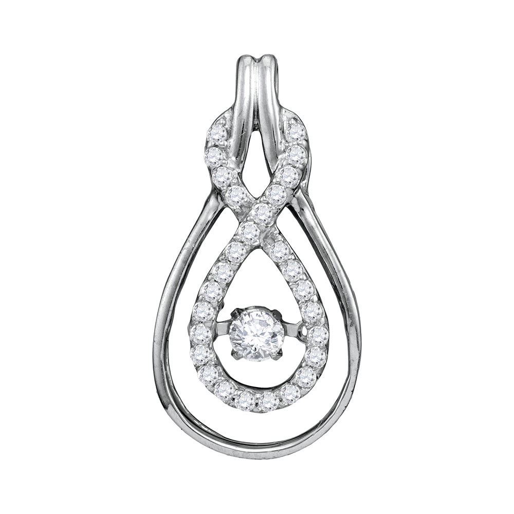 10kt White Gold Womens Round Diamond Vertical Infinity Moving Twinkle Solitaire Pendant 1/5 Cttw