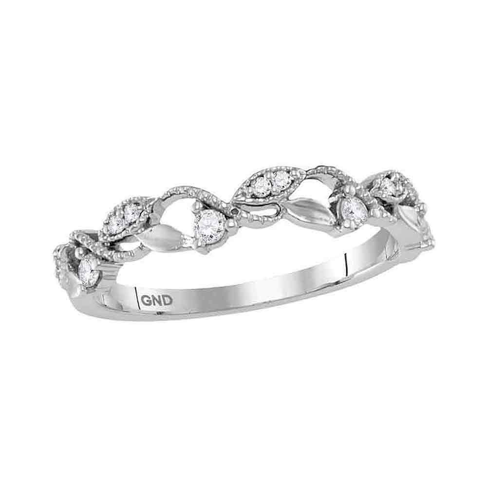 10kt White Gold Womens Round Diamond Vine Stackable Band Ring 1/6 Cttw
