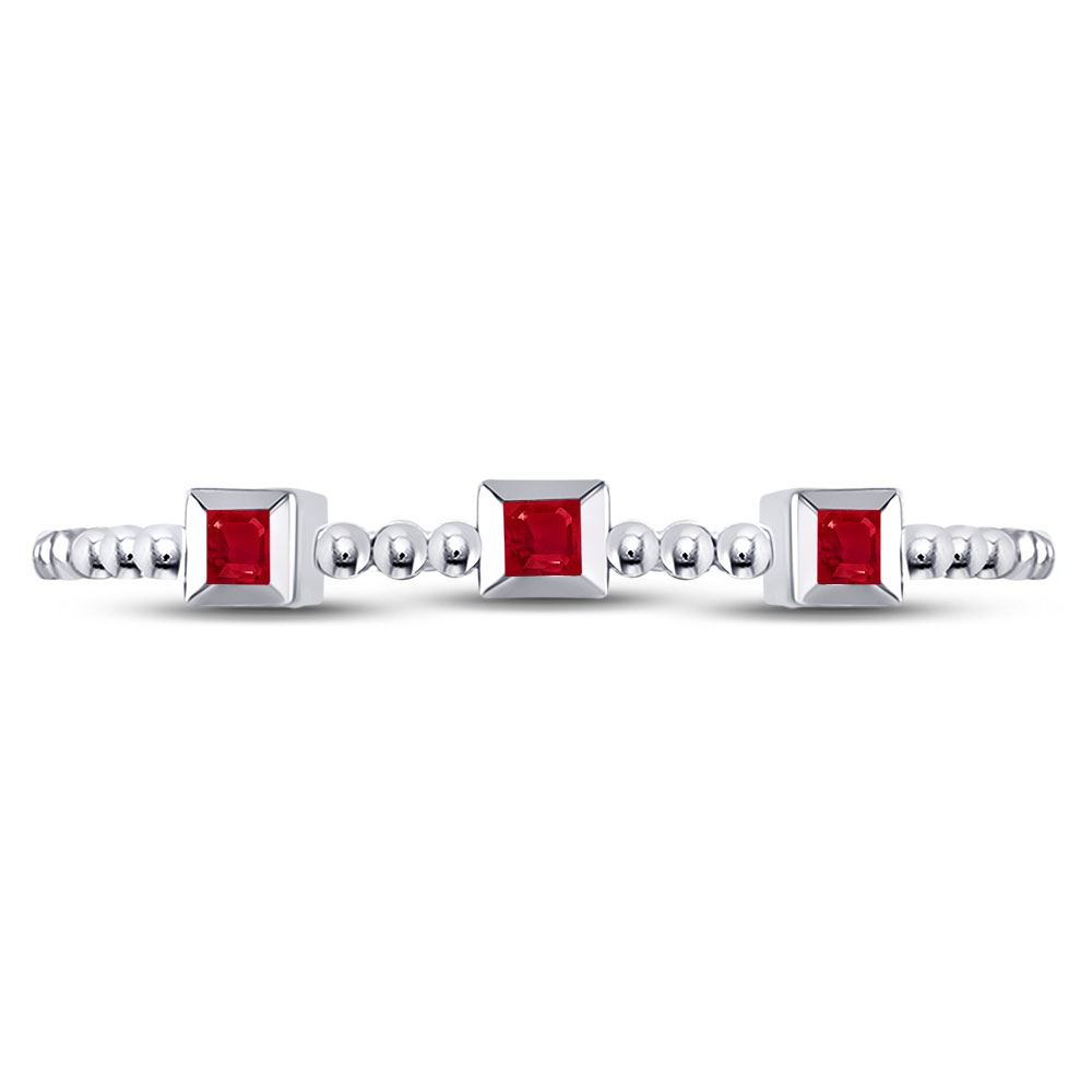 10kt White Gold Womens Princess Ruby 3-Stone Beaded Stackable Band Ring 1/20 Cttw