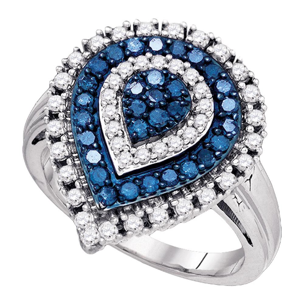 10kt White Gold Womens Round Blue Color Enhanced Diamond Teardrop Cluster Ring 1.00 Cttw