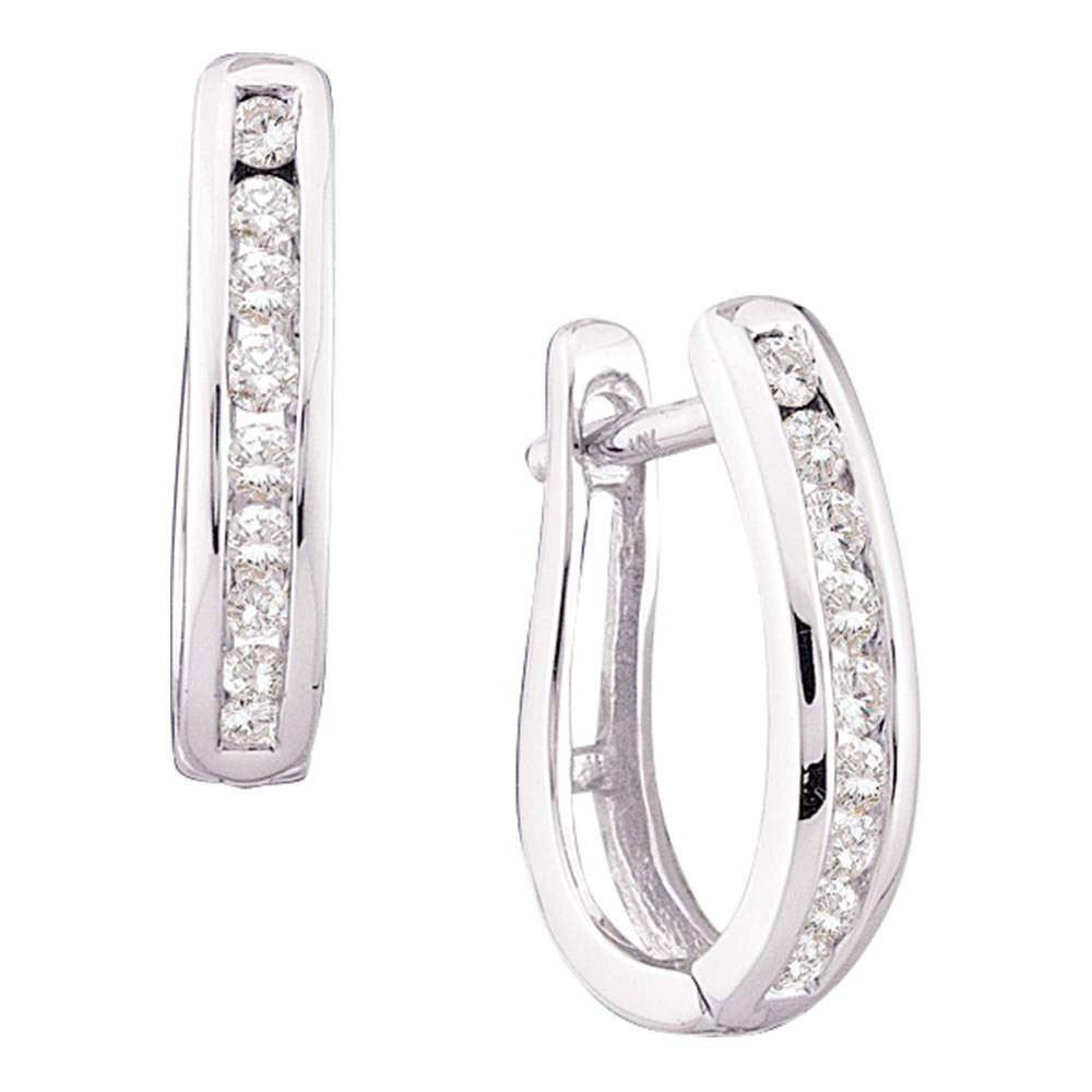 10kt White Gold Womens Round Channel-set Diamond Oblong Hoop Earrings 1/4 Cttw