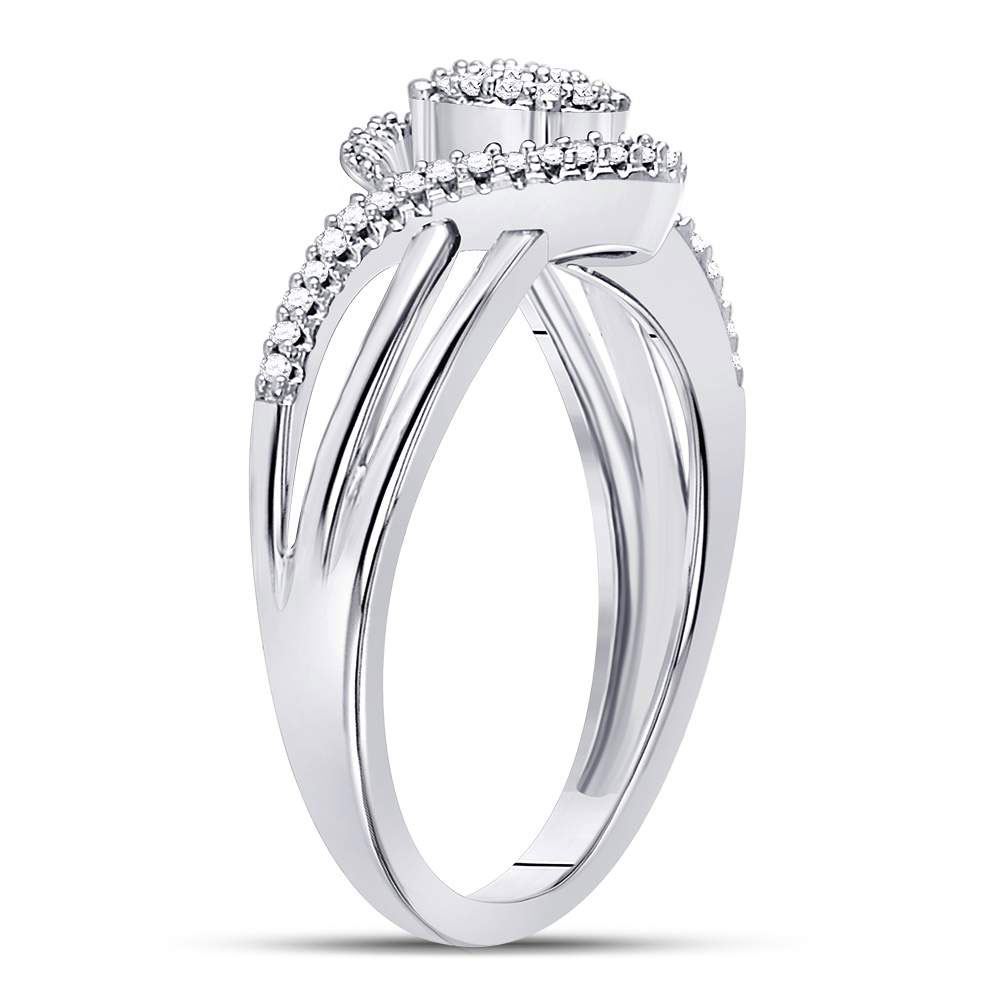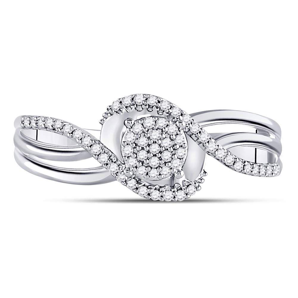10kt White Gold Womens Round Diamond Circle Cluster Strand Ring 1/6 Cttw