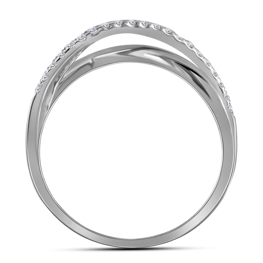 10kt White Gold Womens Round Diamond Double Two Row Cro **|**|** 10kt White Gold Womens Round Diamond Double Two Row Crossover Band Ring 3/8 Cttw