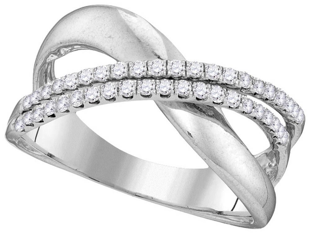 10kt White Gold Womens Round Diamond Double Two Row Cro **|**|** 10kt White Gold Womens Round Diamond Double Two Row Crossover Band Ring 3/8 Cttw
