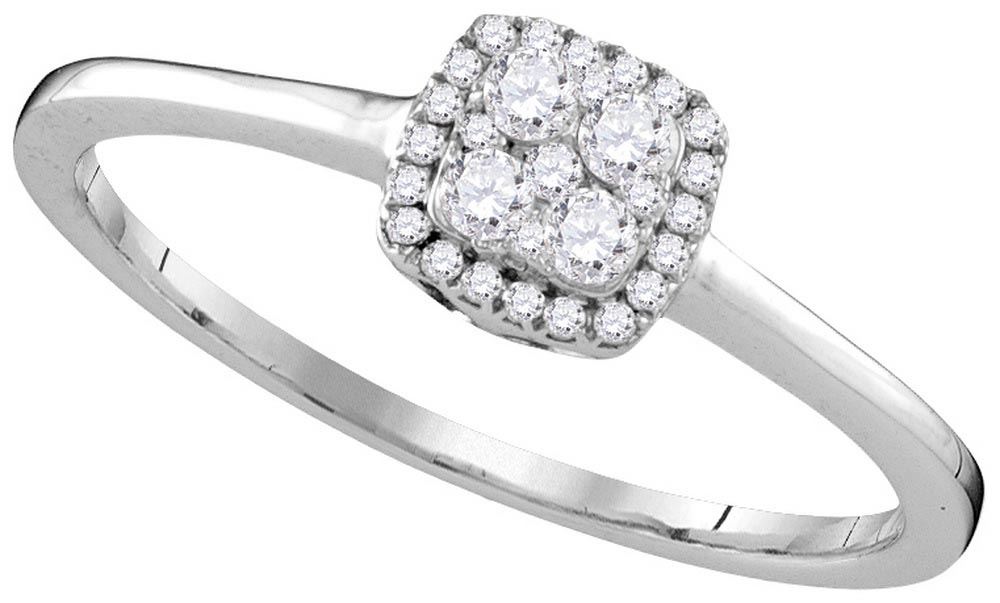 10kt White Gold Womens Round Diamond Halo Cluster Brida **|**|** 10kt White Gold Womens Round Diamond Halo Cluster Bridal Wedding Engagement Ring 1/5 Cttw