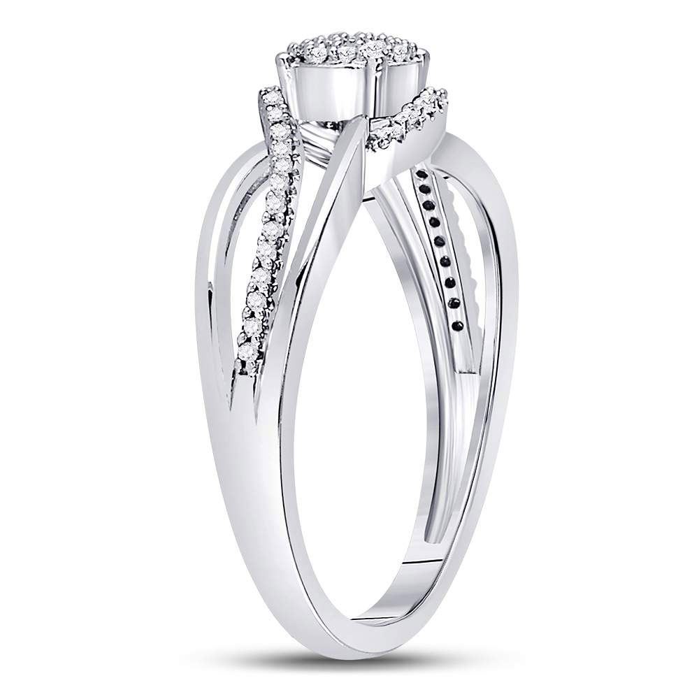 10kt White Gold Womens Round Diamond Open Strand Cluster Ring 1/6 Cttw