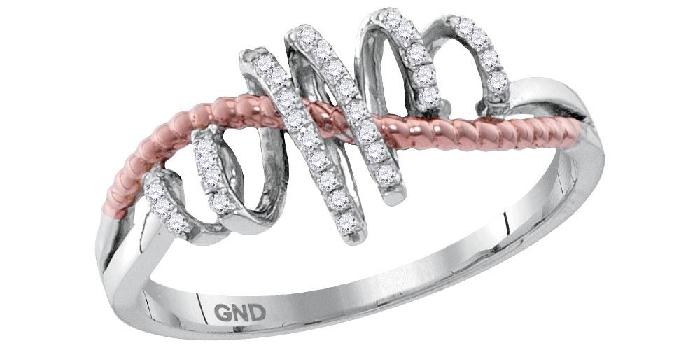 10kt White Gold Womens Round Diamond Pink-tone Rope Spi **|**|** 10kt White Gold Womens Round Diamond Pink-tone Rope Spiral Band Ring 1/10 Cttw