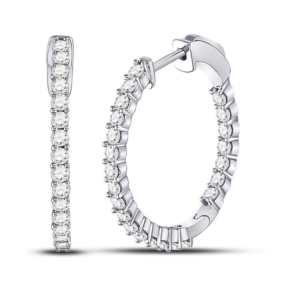 10kt White Gold Womens Round Diamond Single Row Hoop Earrings 1-1/2 Cttw