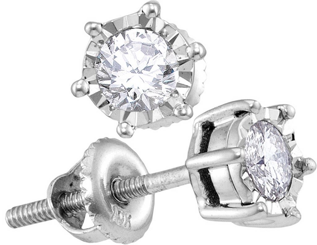 10kt White Gold Womens Round Diamond Solitaire Screwbac **|**|** 10kt White Gold Womens Round Diamond Solitaire Screwback Stud Earrings 1/4 Cttw