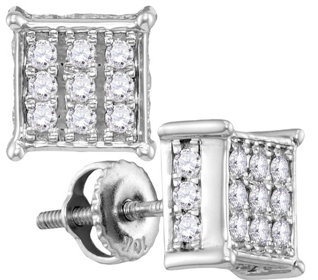 10kt White Gold Womens Round Diamond Square Cluster Scr **|**|** 10kt White Gold Womens Round Diamond Square Cluster Screwback Earrings 1/2 Cttw