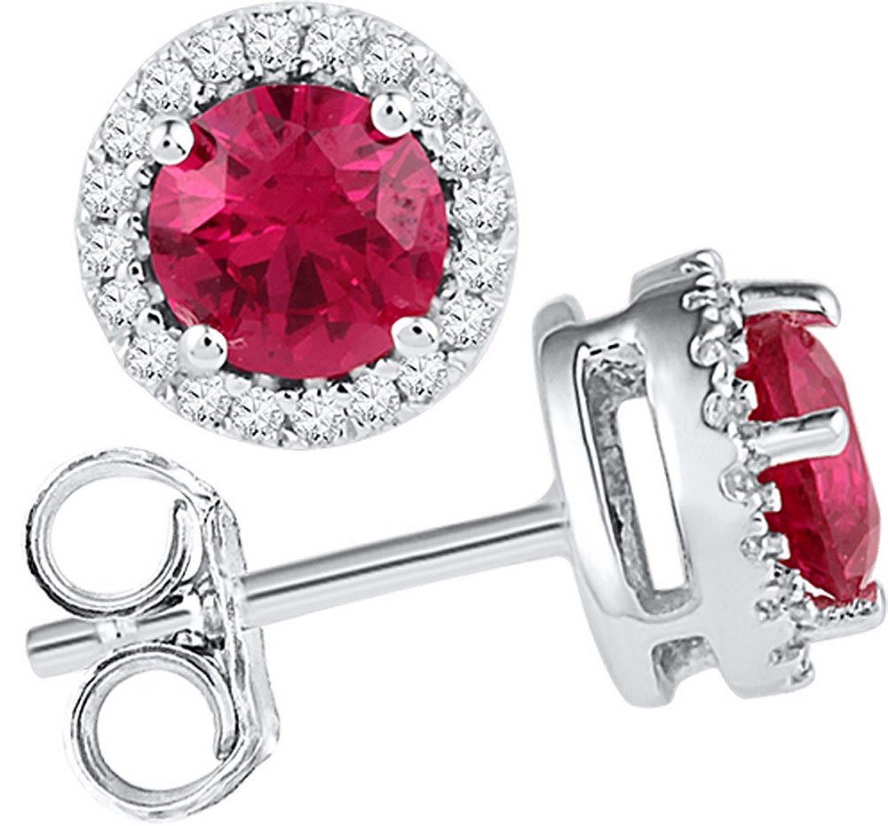 10kt White Gold Womens Round Lab-Created Ruby Solitaire **|**|** 10kt White Gold Womens Round Lab-Created Ruby Solitaire Diamond Screwback Earrings 1-1/3 Cttw