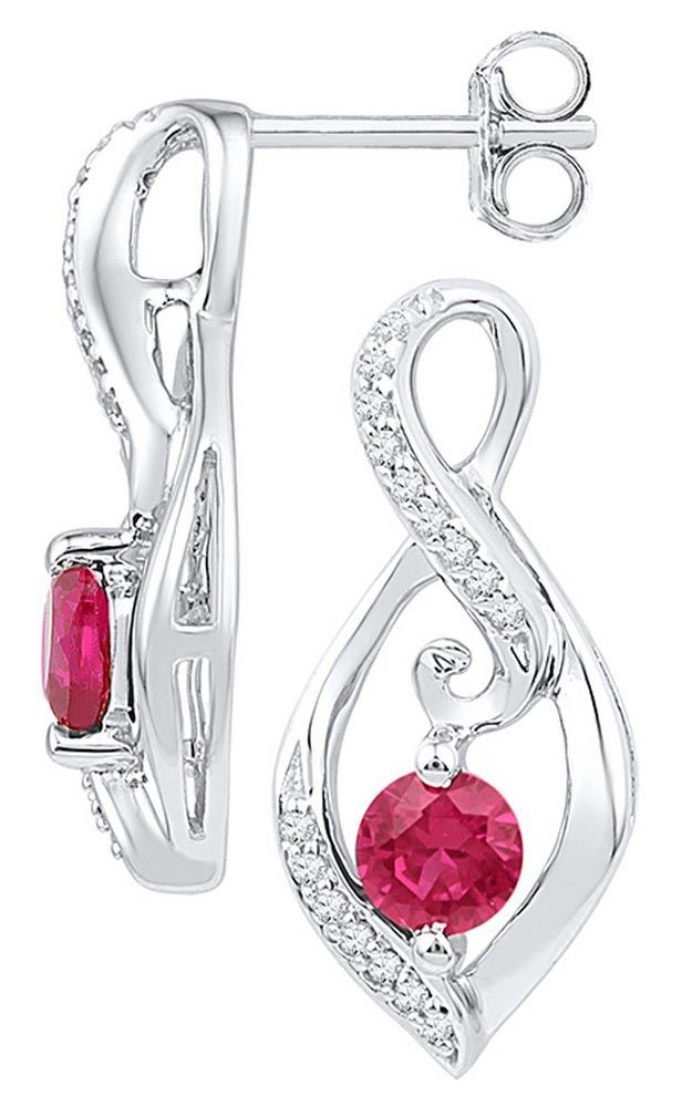 10kt White Gold Womens Round Lab-Created Ruby Solitaire **|**|** 10kt White Gold Womens Round Lab-Created Ruby Solitaire Oval Diamond Earrings 1.00 Cttw