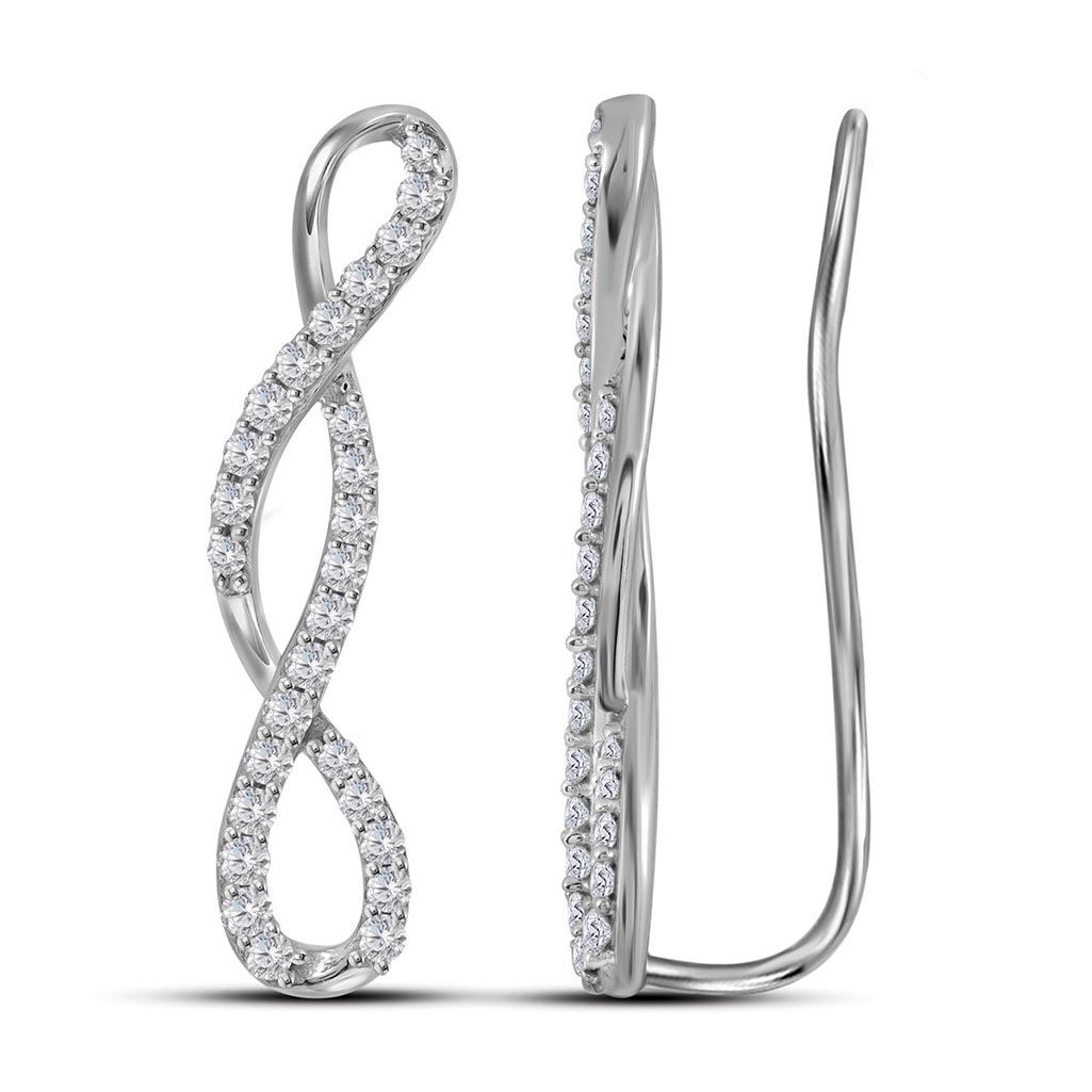 10kt White Gold Womens Round Natural Diamond Infinity C **|**|** 10kt White Gold Womens Round Natural Diamond Infinity Climber Fashion Earrings 1/2 Cttw
