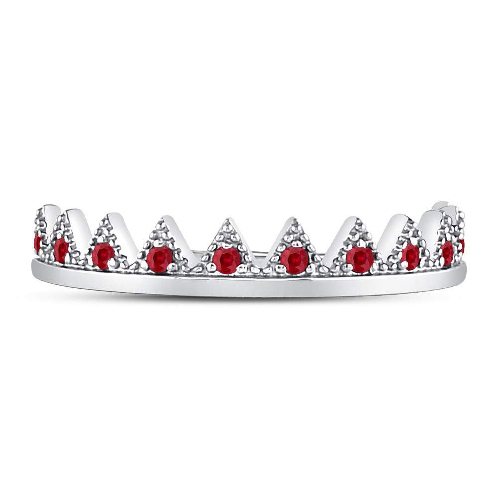 10kt White Gold Womens Round Ruby Beaded Chevron Stackable Band Ring 1/10 Cttw