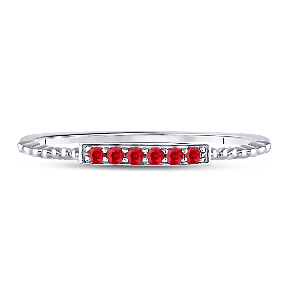 10kt White Gold Womens Round Ruby Beaded Stackable Band Ring 1/20 Cttw