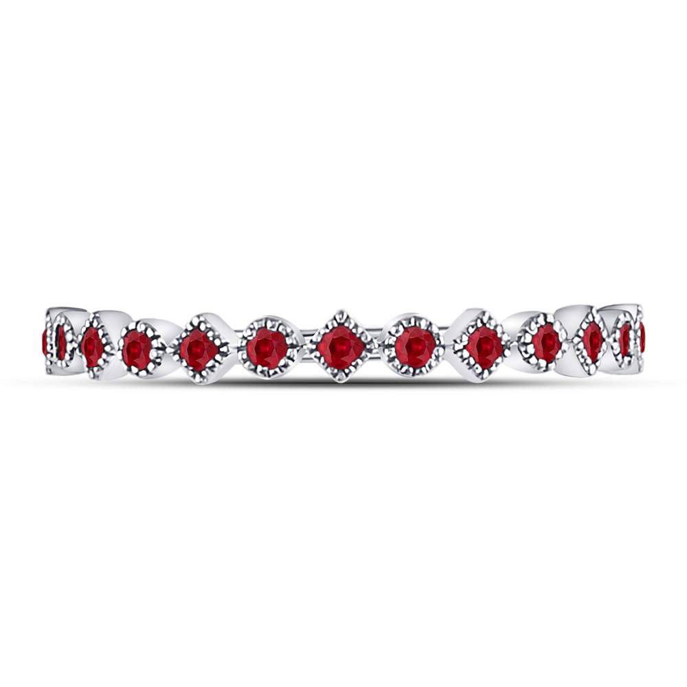 10kt White Gold Womens Round Ruby Square Dot Stackable Band Ring 1/5 Cttw