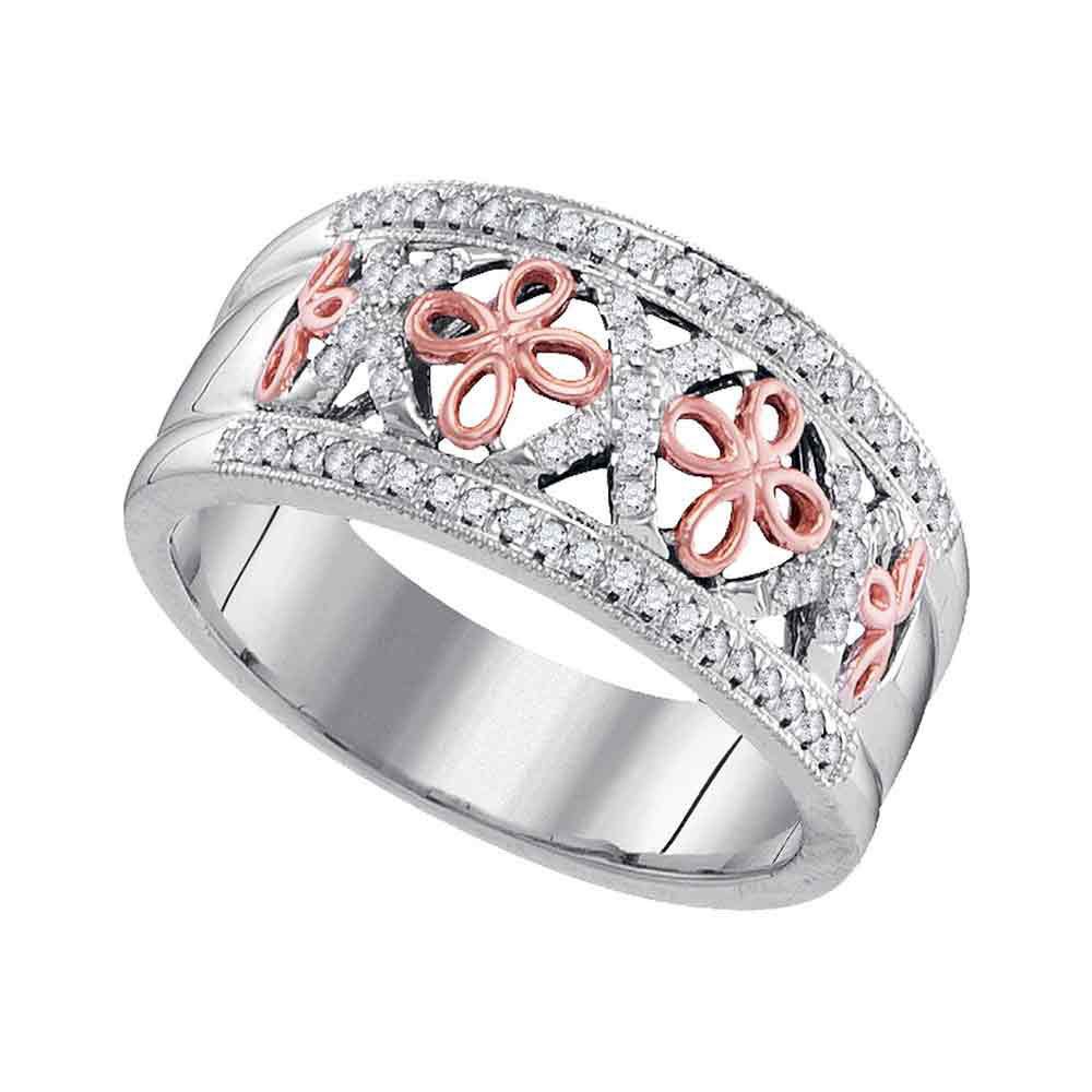 10kt White Two-tone Gold Womens Round Diamond Rose Cross Band Ring 1/5 Cttw