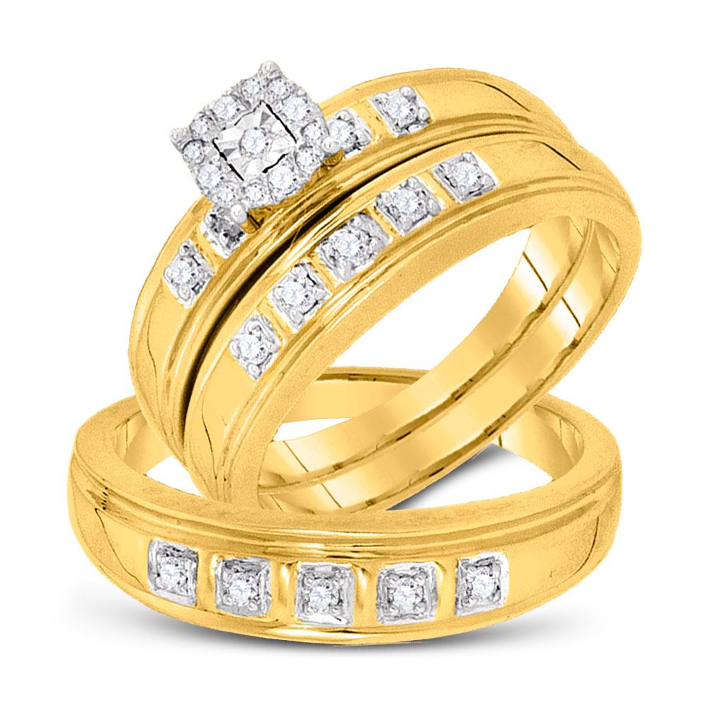 10kt Yellow Gold His & Hers Round Diamond Solitaire Matching Bridal Wedding Ring Band Set 1/4 Cttw