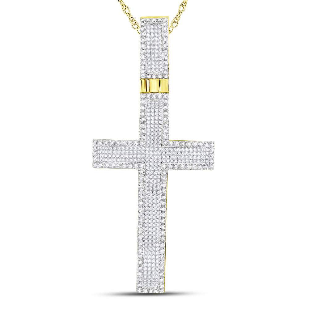 10kt Yellow Gold Mens Princess Round Diamond Inset Cross Charm Pendant 2-1/2 Cttw