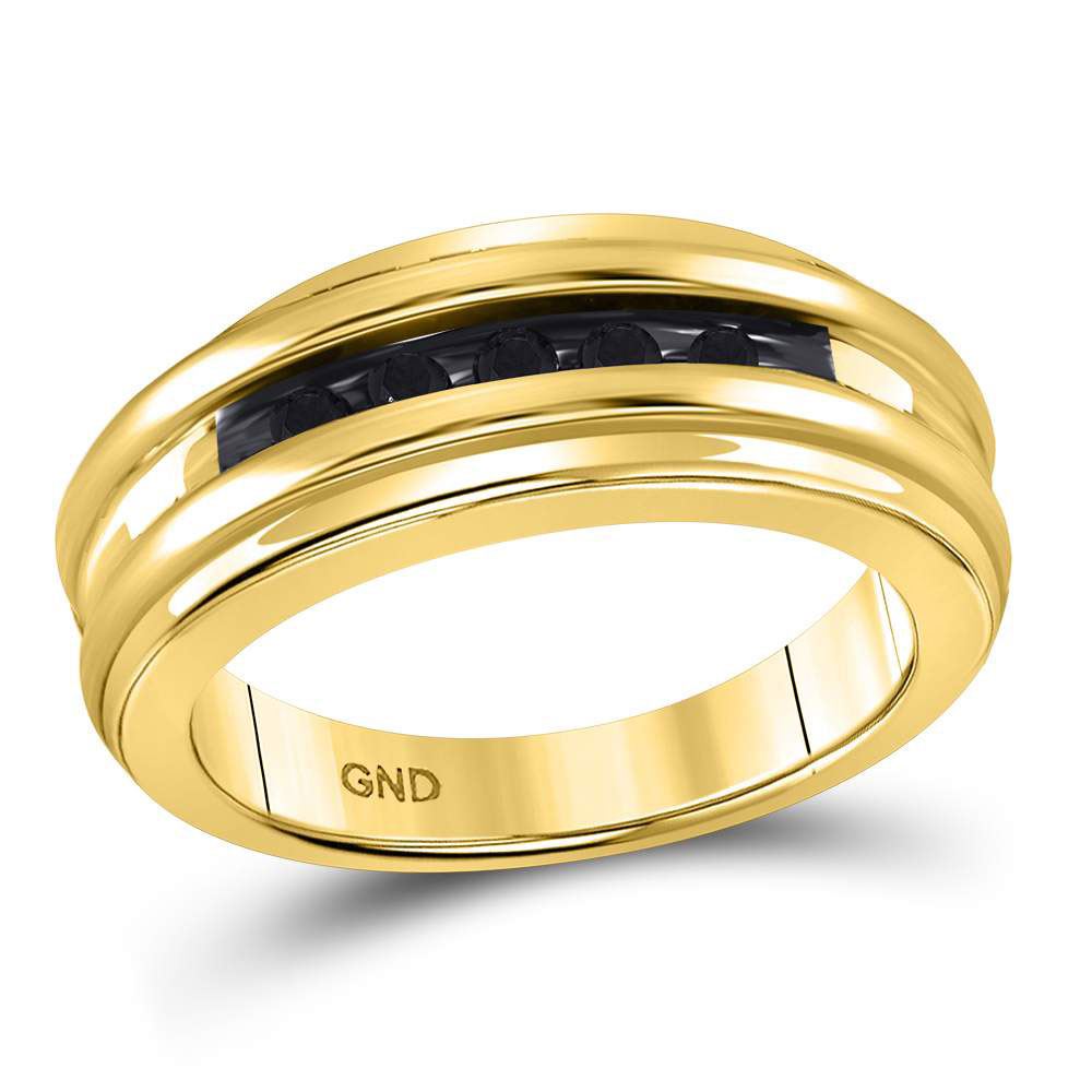 SKU: RB80986 ---- 10kt Yellow Gold Mens Round Black Color Enhanced Diamond Band Ring 1/4 Cttw