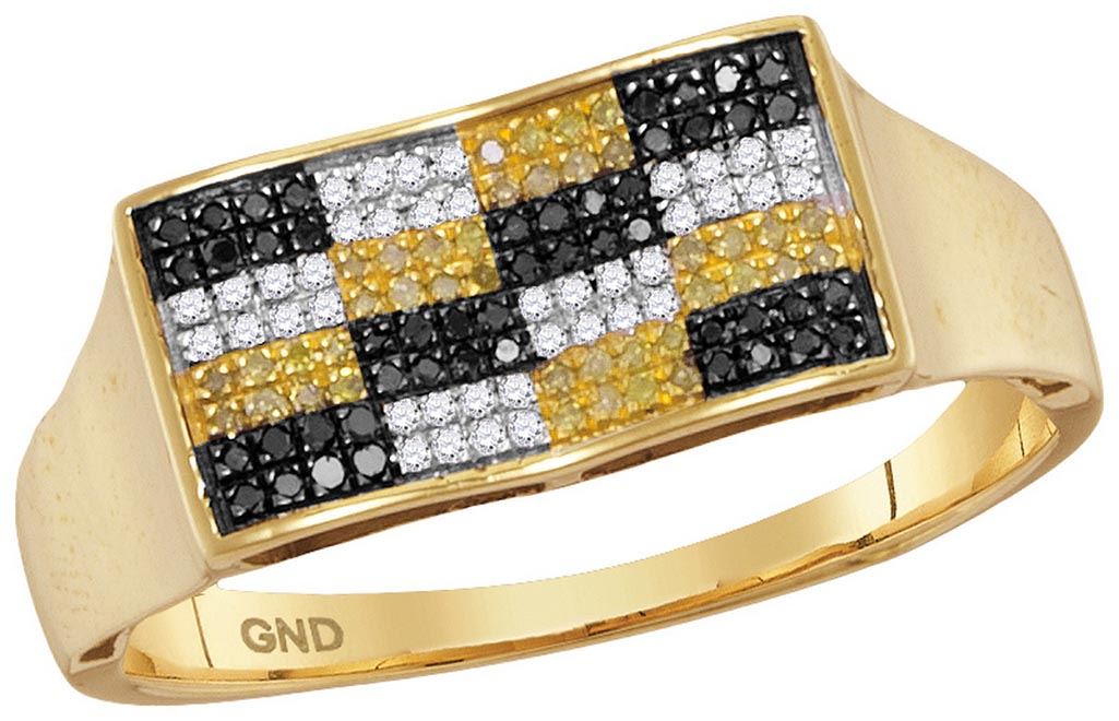 10kt Yellow Gold Mens Round Black Yellow Colored Diamon **|**|** 10kt Yellow Gold Mens Round Black Yellow Colored Diamond Checkered Cluster Ring 1/4 Cttw