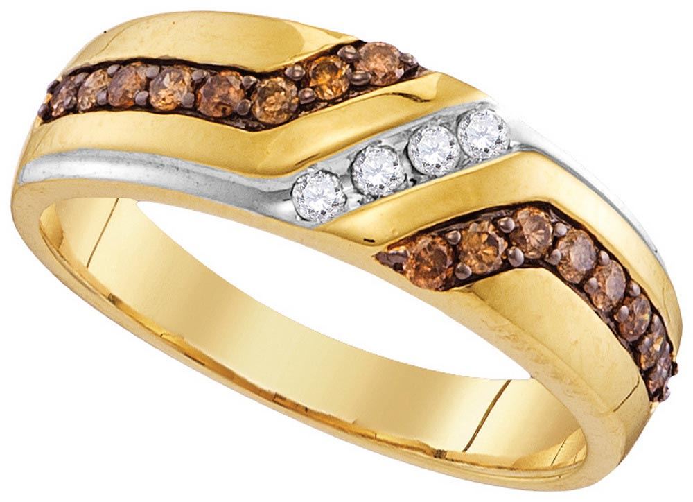 10kt Yellow Gold Mens Round Cognac-brown Colored Diamon **|**|** 10kt Yellow Gold Mens Round Cognac-brown Colored Diamond Wedding Anniversary Band Ring 1/3 Cttw