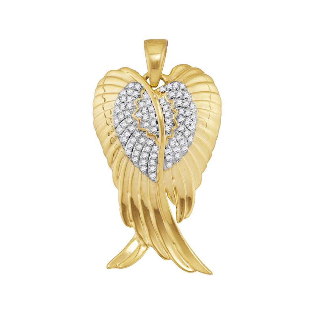 10kt Yellow Gold Mens Round Diamond Angel Wings Charm P **|**|** 10kt Yellow Gold Mens Round Diamond Angel Wings Charm Pendant 1/3 Cttw