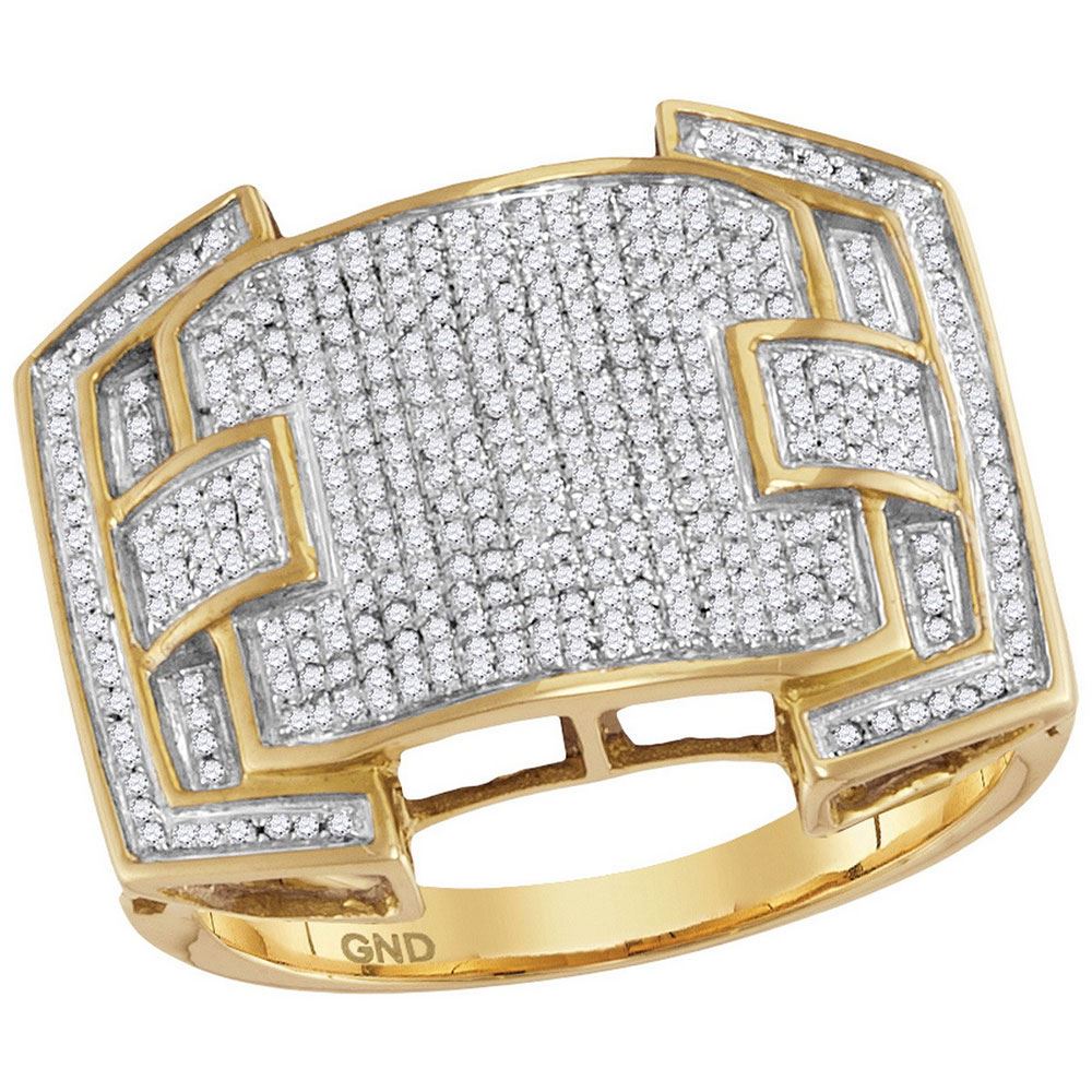 10kt Yellow Gold Mens Round Diamond Arched Square Cluster Ring 5/8 Cttw