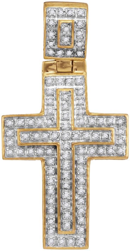 10kt Yellow Gold Mens Round Diamond Christian Cross Lay **|**|** 10kt Yellow Gold Mens Round Diamond Christian Cross Layered Charm Pendant 1/4 Cttw
