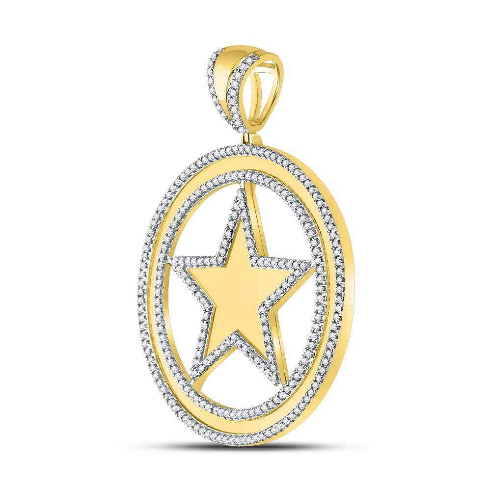 10kt Yellow Gold Mens Round Diamond Circle Star Charm Pendant 1.00 Cttw