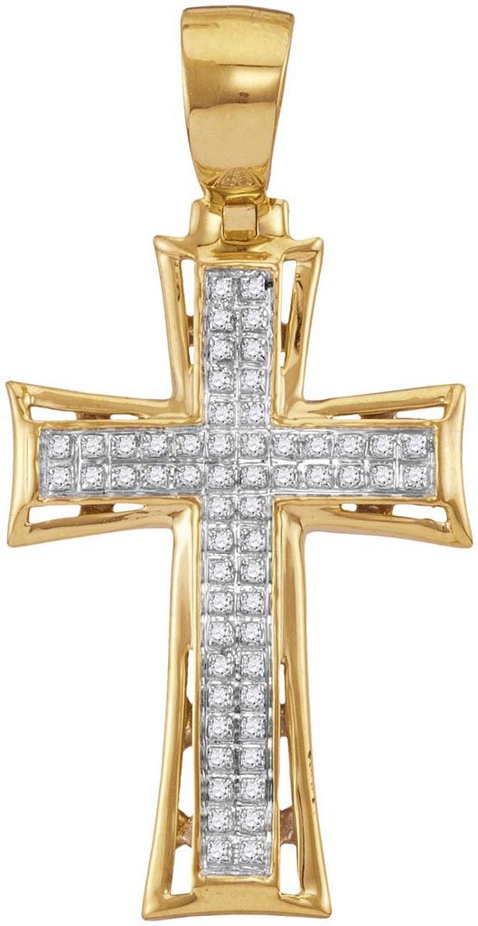 10kt Yellow Gold Mens Round Diamond Flared Cross Charm **|**|** 10kt Yellow Gold Mens Round Diamond Flared Cross Charm Pendant 1/6 Cttw 112982