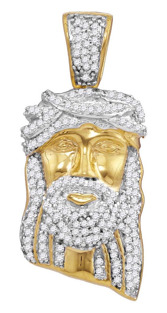 10kt Yellow Gold Mens Round Diamond Jesus Christ Messia **|**|** 10kt Yellow Gold Mens Round Diamond Jesus Christ Messiah Head Charm Pendant 3/8 Cttw