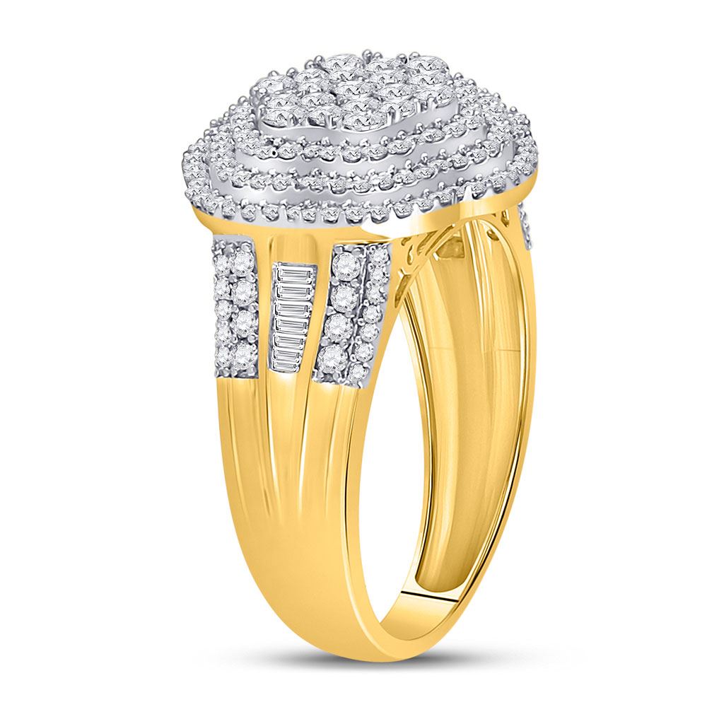 10kt Yellow Gold Mens Round Diamond Large Cluster Band Ring 1-1/2 Cttw