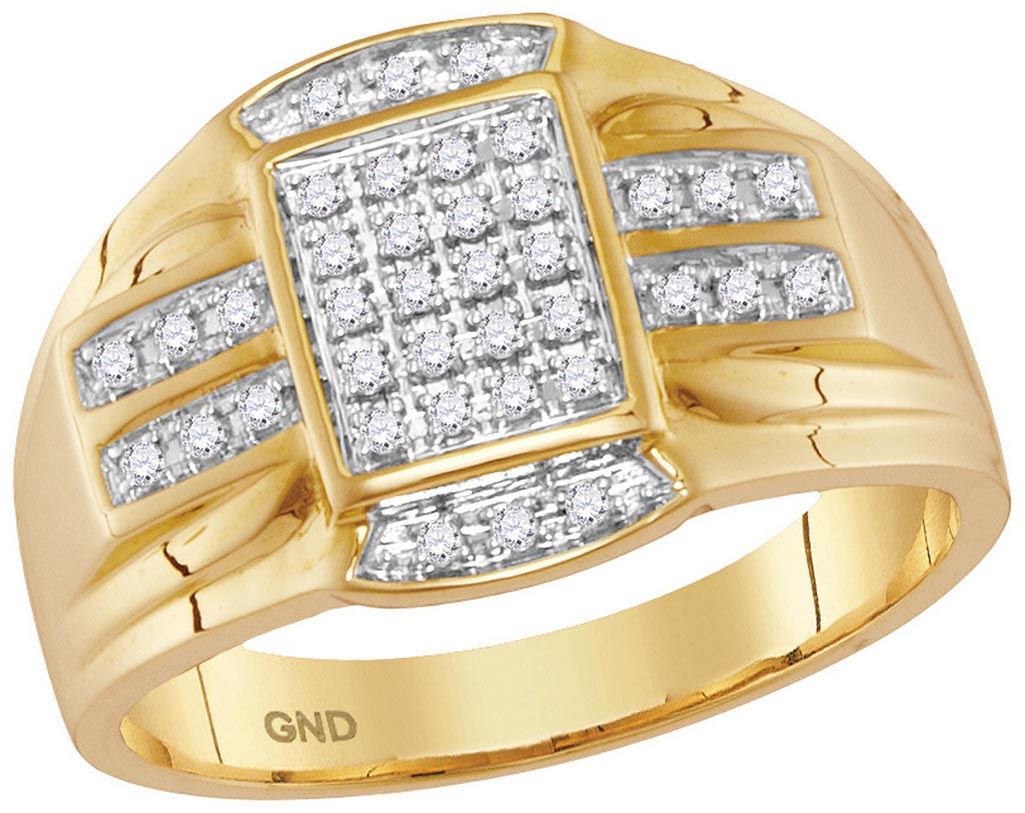 10kt Yellow Gold Mens Round Diamond Rectangle Cluster R **|**|** 10kt Yellow Gold Mens Round Diamond Rectangle Cluster Ring 1/4 Cttw