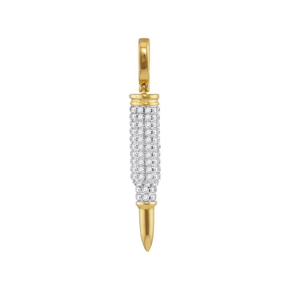 10kt Yellow Gold Mens Round Diamond Rifle Bullet Charm Pendant 1-1/2 Cttw