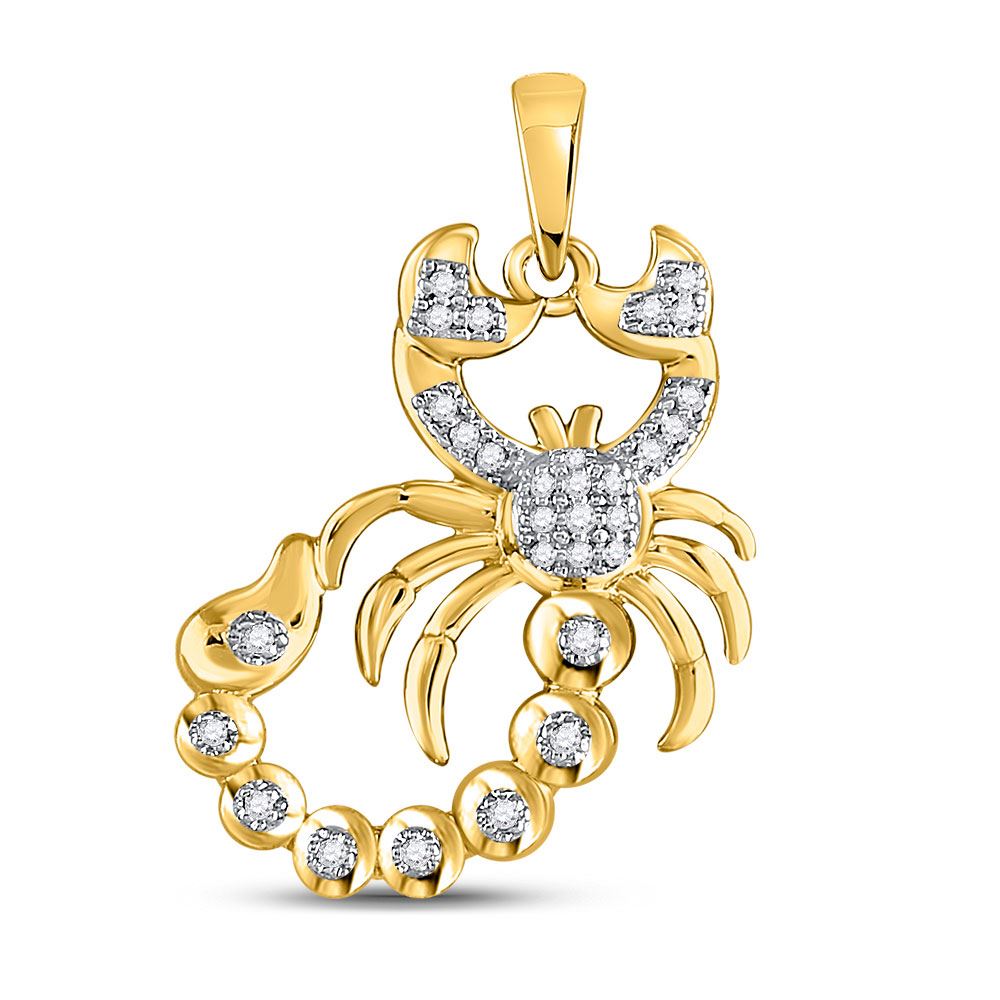 10kt Yellow Gold Mens Round Diamond Scorpion Charm Pendant 1/10 Cttw