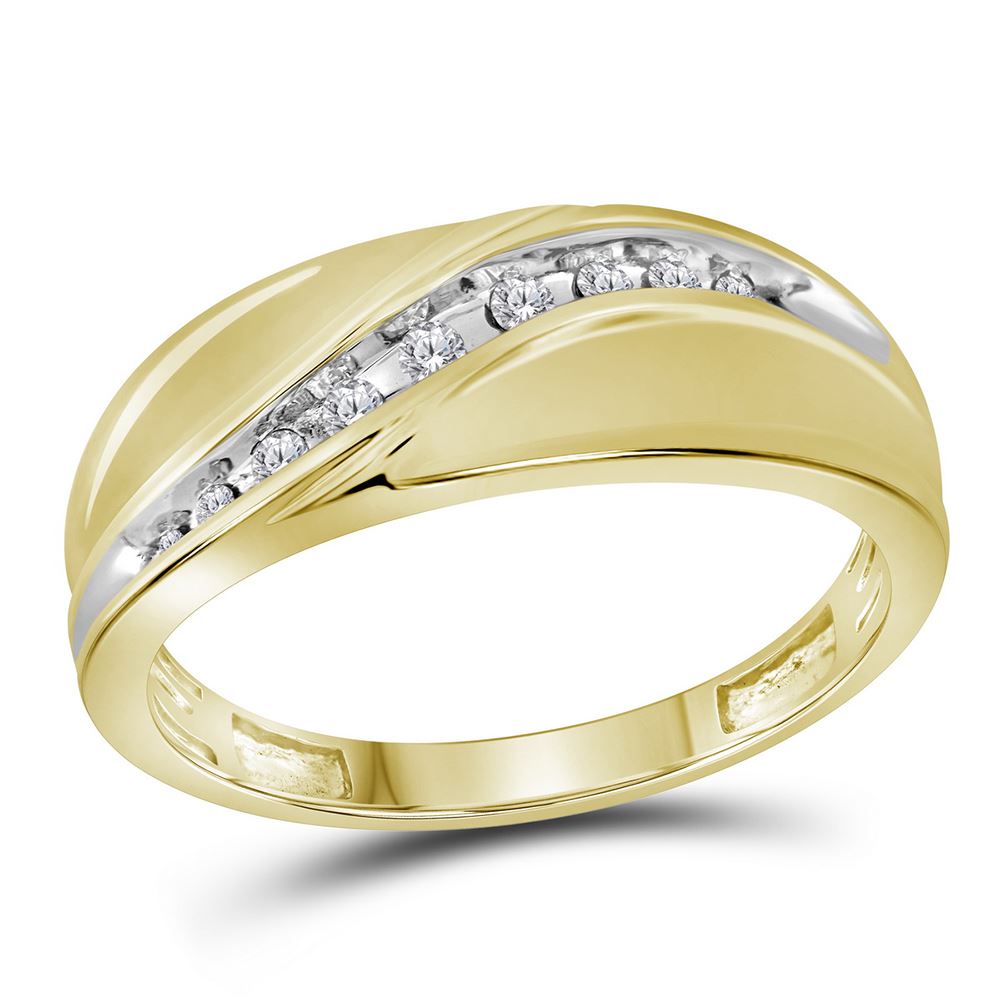 10kt Yellow Gold Mens Round Diamond Single Row Band Rin **|**|** 10kt Yellow Gold Mens Round Diamond Single Row Band Ring 1/8 Cttw