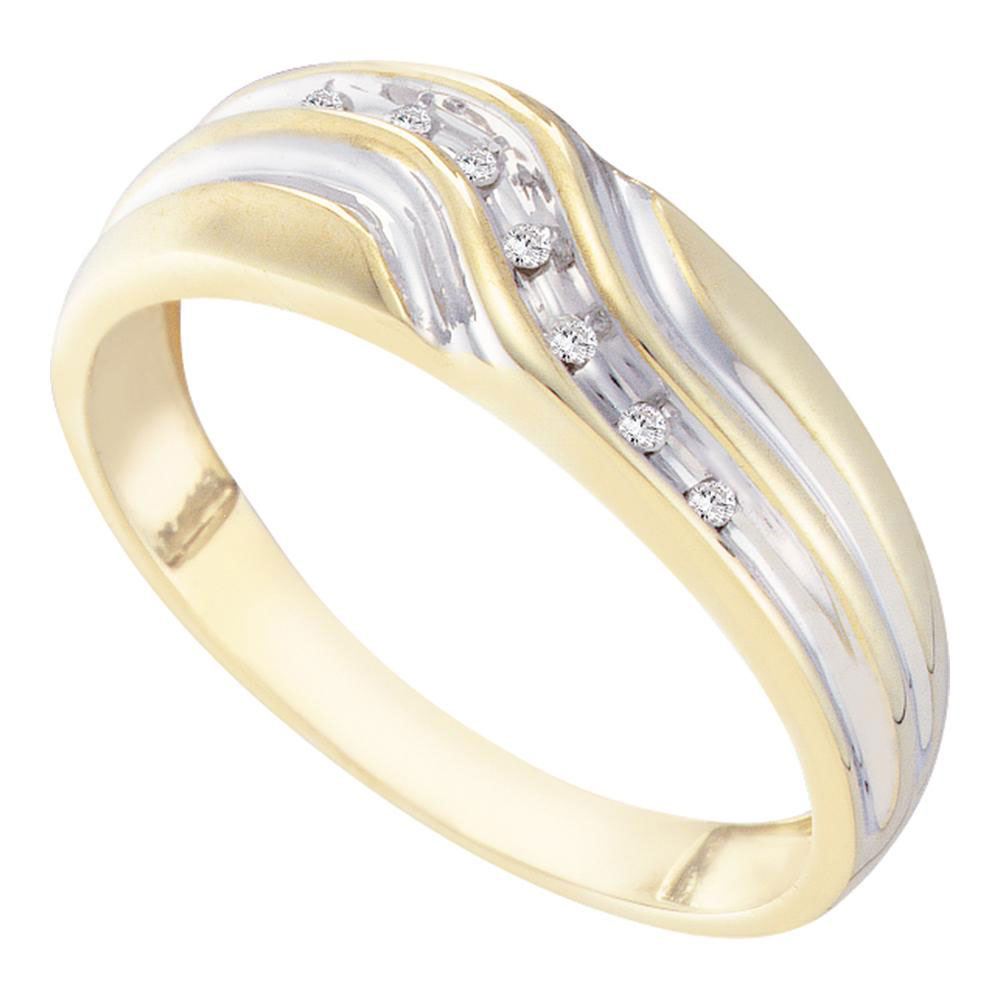 10kt Yellow Gold Mens Round Diamond Single Row Two-tone Wedding Band Ring 1/20 Cttw