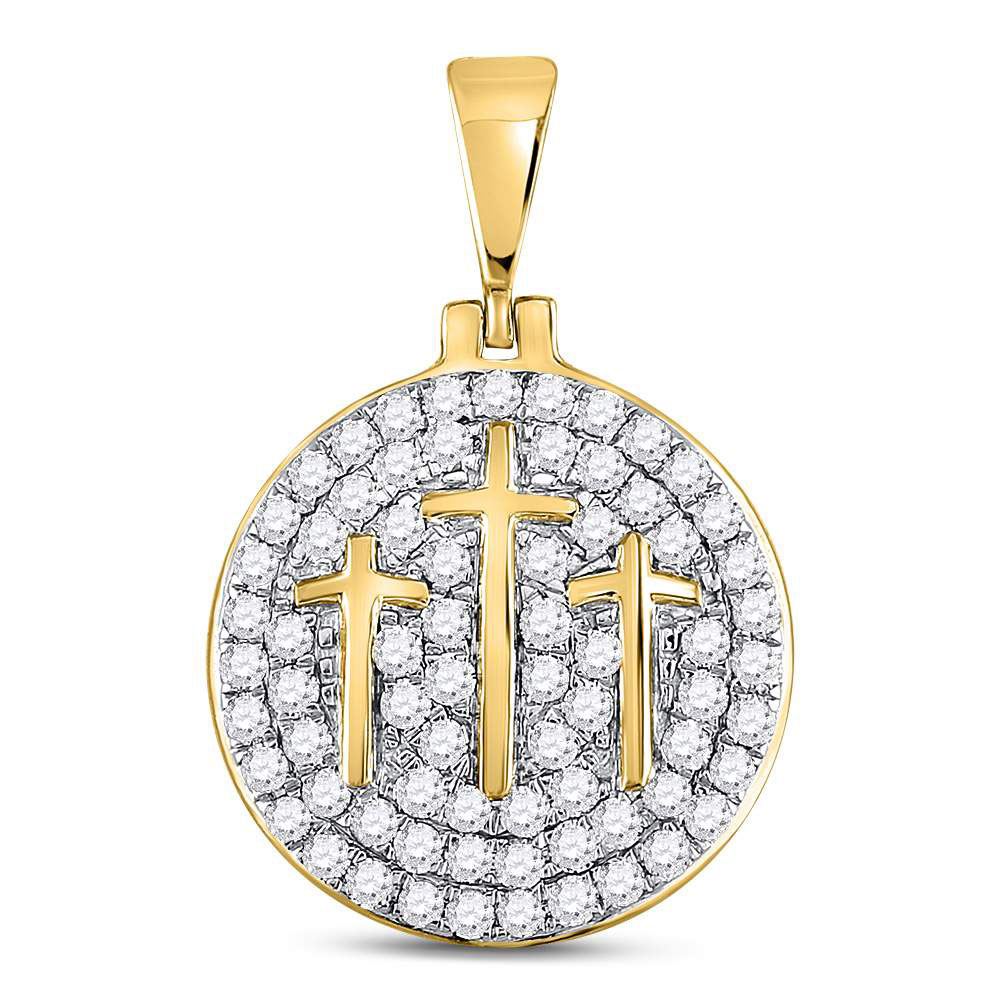 10kt Yellow Gold Mens Round Diamond Trinity Triple Cross Charm Pendant 1-1/2 Cttw