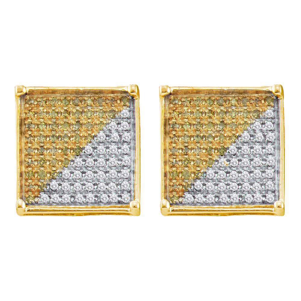 SKU: RB54618 ---- 10kt Yellow Gold Mens Round Yellow Color Enhanced Diamond Square Cluster Earrings 7/8 Cttw