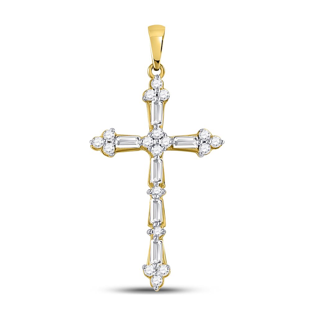 10kt Yellow Gold Round Baguette Diamond Cross Faith Pendant 1/2 Cttw