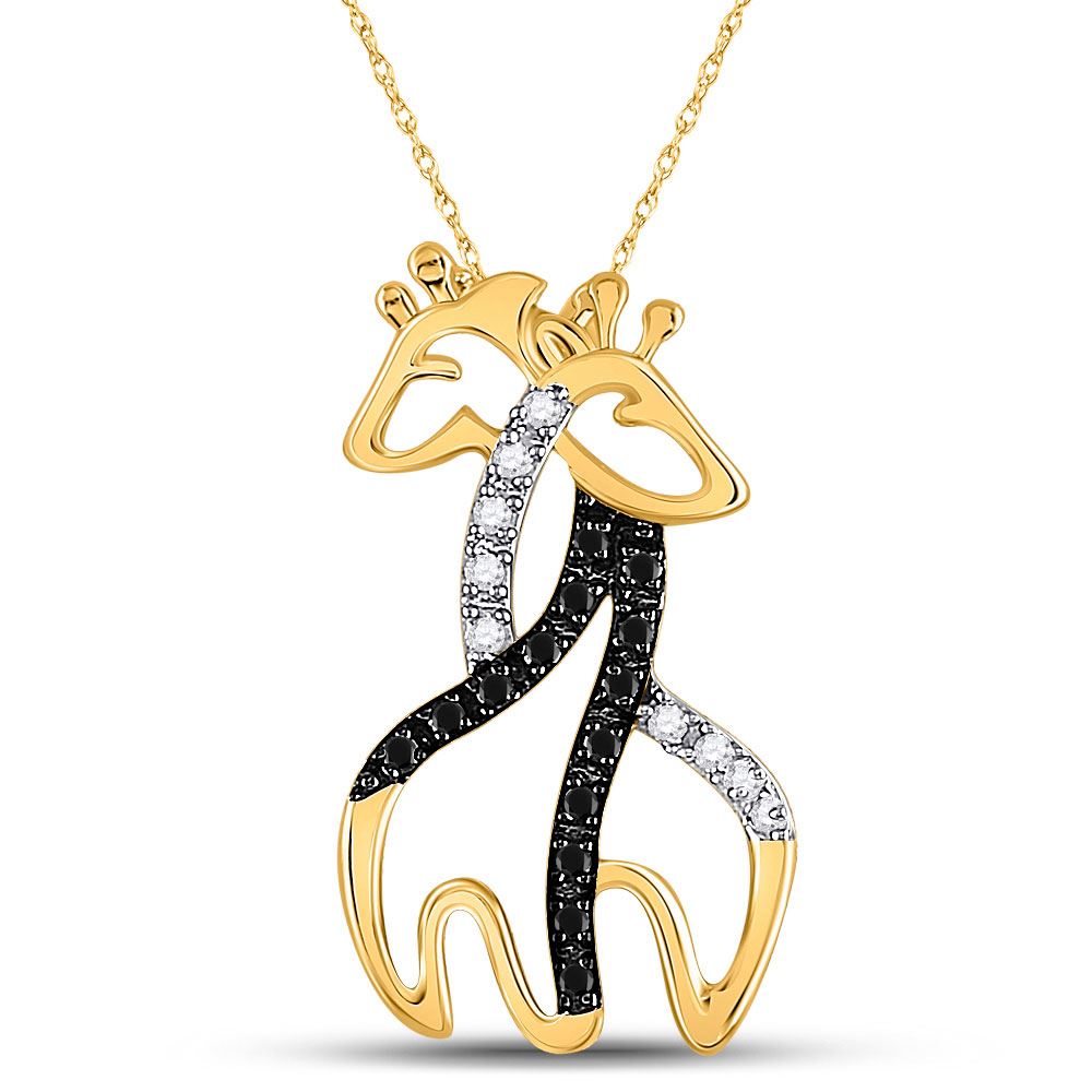 10kt Yellow Gold Womens Round Black Color Enhanced Diamond Giraffe Animal Pendant 1/10 Cttw
