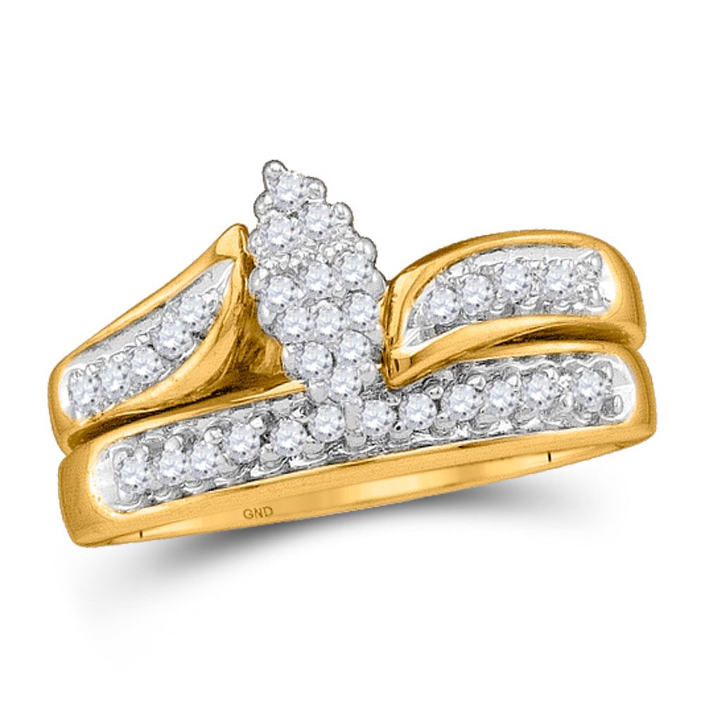 10kt Yellow Gold Womens Round Blue Color Enhanced Diamond Cluster Earrings 1.00 Cttw