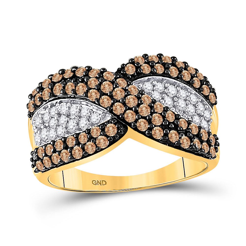 10kt Yellow Gold Womens Round Brown Diamond Crossover Stripe Band Ring 1.00 Cttw