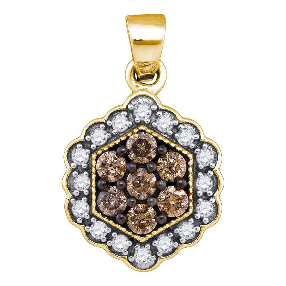 SKU: RB85898 ---- 10kt Yellow Gold Round Brown Diamond Hexagon Flower Cluster Pendant 1/2 Cttw
