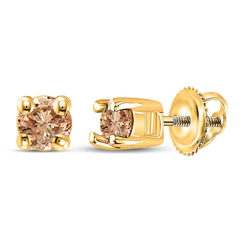 SKU: RB82792 ---- 10kt Yellow Gold Round Brown Diamond Solitaire Stud Earrings 1/4 Cttw
