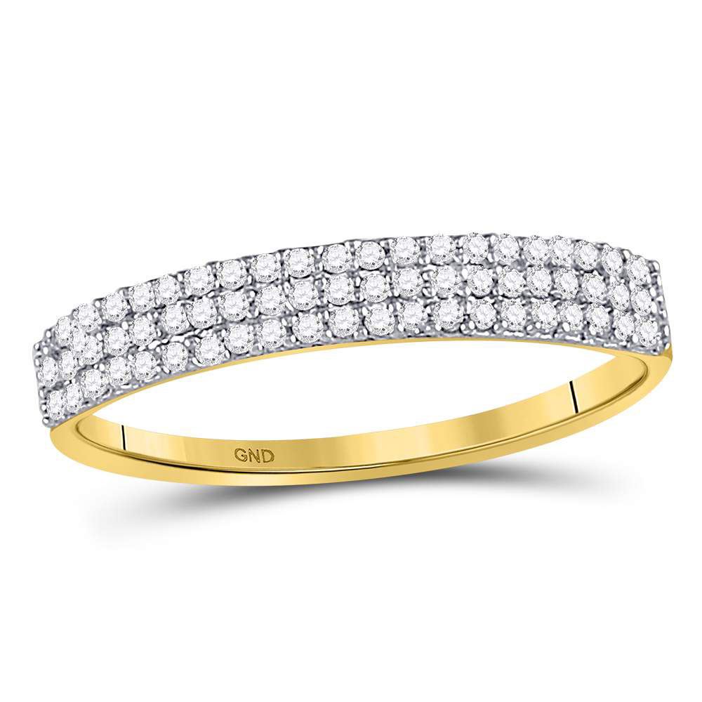 10kt Yellow Gold Round Diamond 3-Row Anniversary Ring 1/5 Cttw