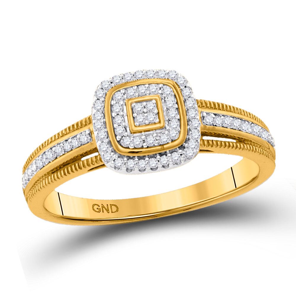 10kt Yellow Gold Womens Round Diamond Cluster Square Frame Milgrain Ring 1/6 Cttw