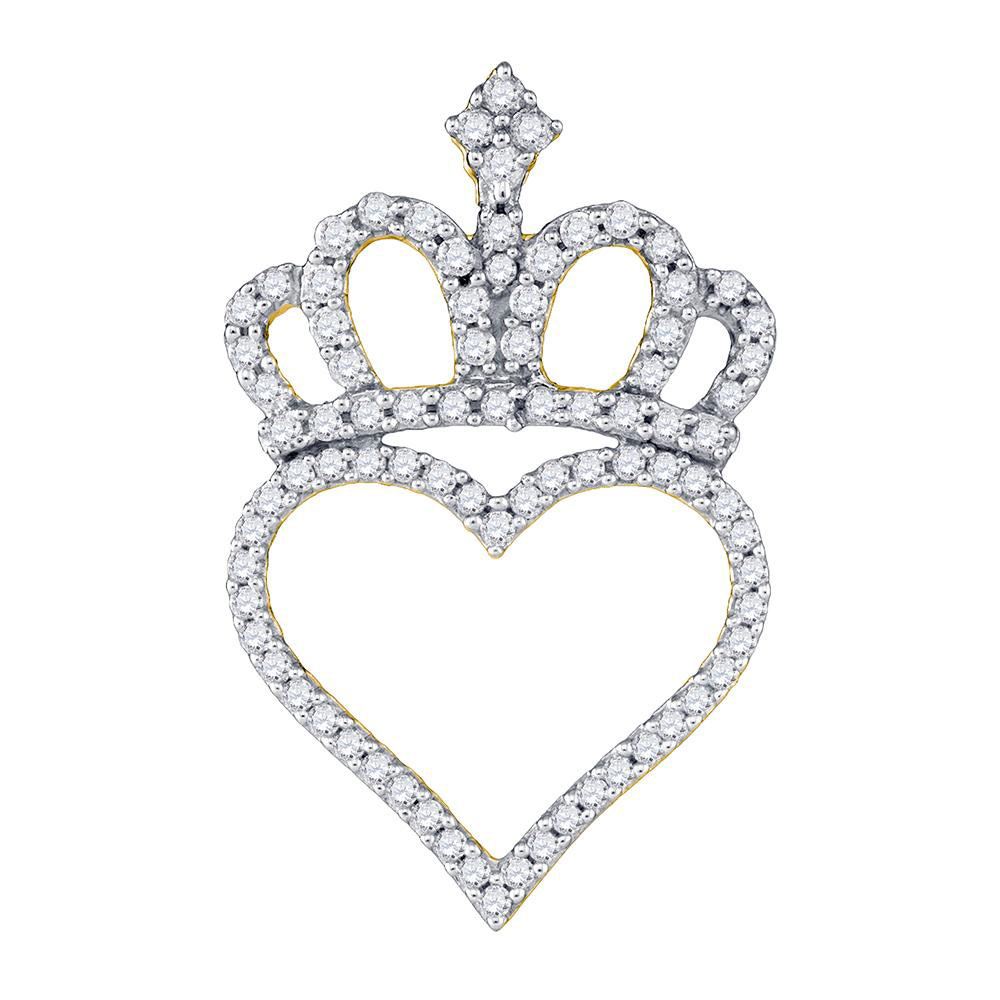 10kt Yellow Gold Womens Round Diamond Crown Heart Pendant 1/3 Cttw