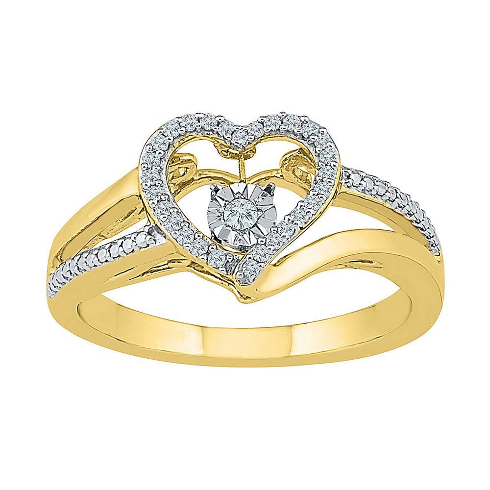 SKU: RB116427 ---- 10kt Yellow Gold Round Diamond Heart Moving Twinkle Ring 1/10 Cttw